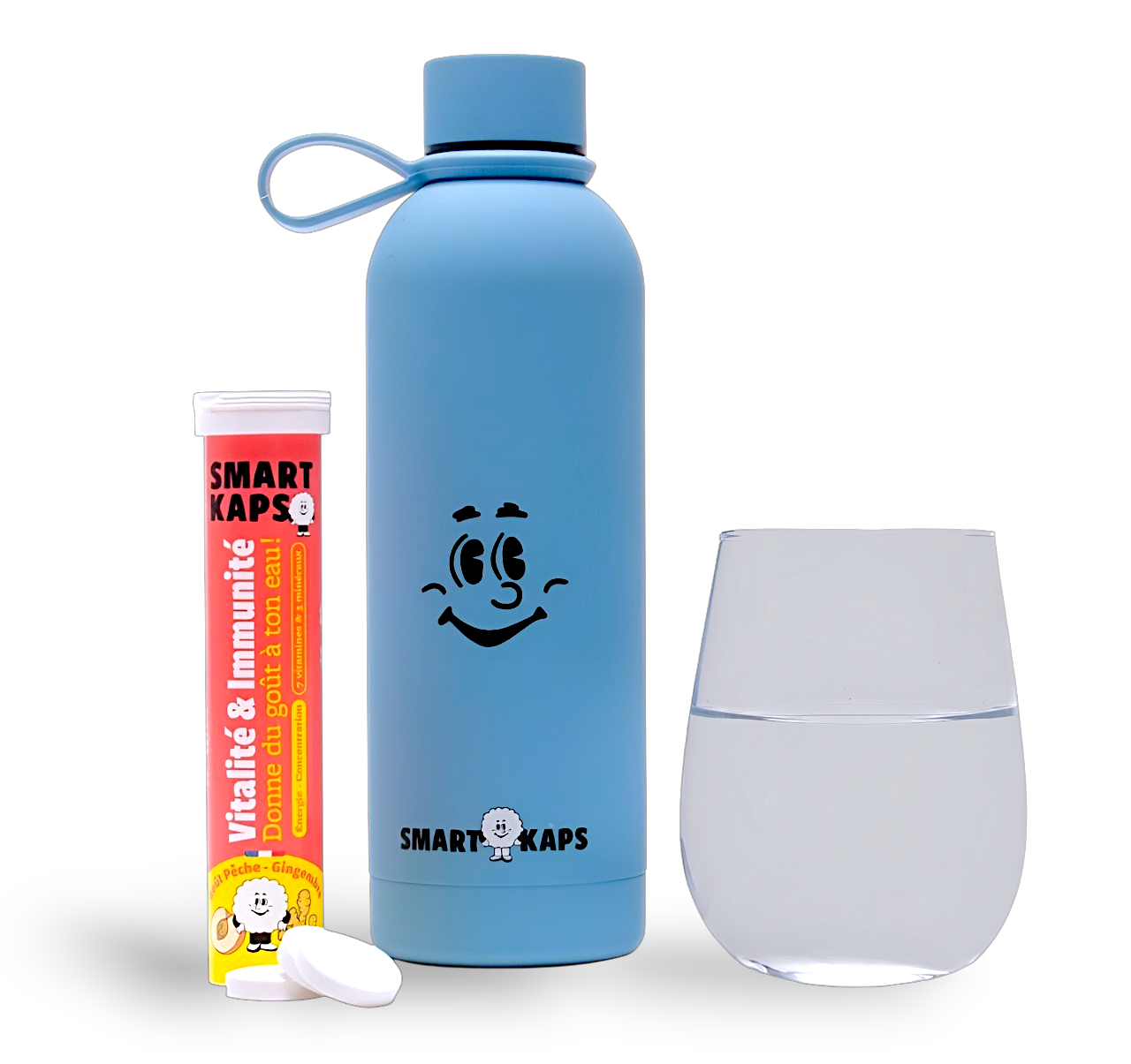 Une bille Smart Kaps dans l'eau plate, patientez une minute, et savourez une délicieuse eau vitaminée.